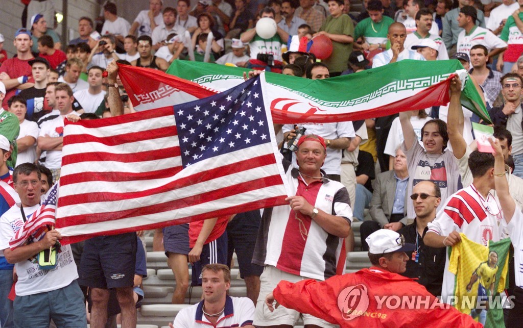 | ▲ 1998년 프랑스 월드컵에서 이란과 미국 축구팬들 [AFP=연합뉴스 자료사진. 재판매 및 DB금지] |