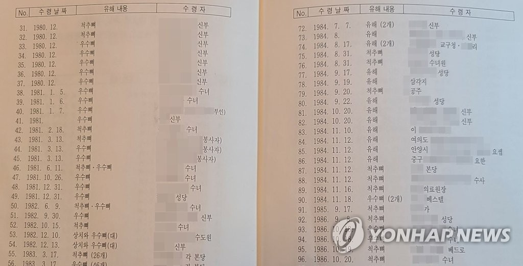 교구 본당 85곳에 유해 안치 파악…개인소유 유해 신고·봉헌 받기로