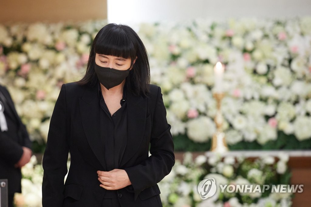 고인의 유작이 된 영화 '정이'(가제)를 연출한 연상호 감독은 전날 저녁 늦게까지 빈소에서 장례 절차를 준비했고, 이날도 빈소를 찾아 지하 2층 빈소와 1층을 오가며 조문객을 맞았다.