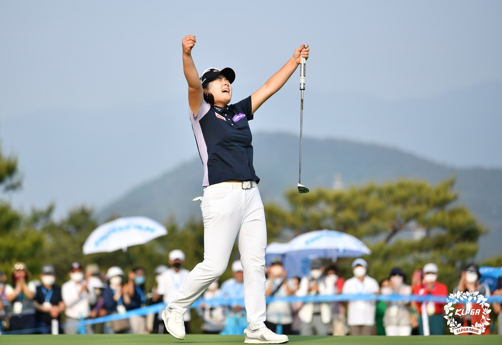 | ▲ 우승이 확정되자 환호하는 홍정민. [KLPGA 제공. 재판매 및 DB 금지] |