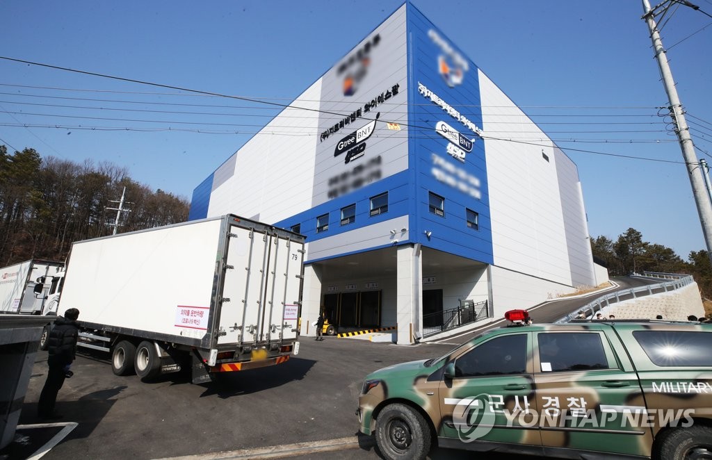 The rehearsal focused on transporting AstraZeneca's vaccines from SK Bioscience Co.'s factory in Andong, 270 kilometers southeast of Seoul, to a distribution center in Icheon, 80 kilometers south of the capital, and then to 25 local health centers across the nation, the defense ministry said.