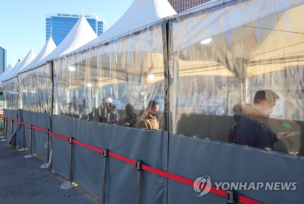 | ▲ People stand in line to take coronavirus tests at a screening clinic in front of Seoul Station on Jan. 12, 2022. (Yonhap) |