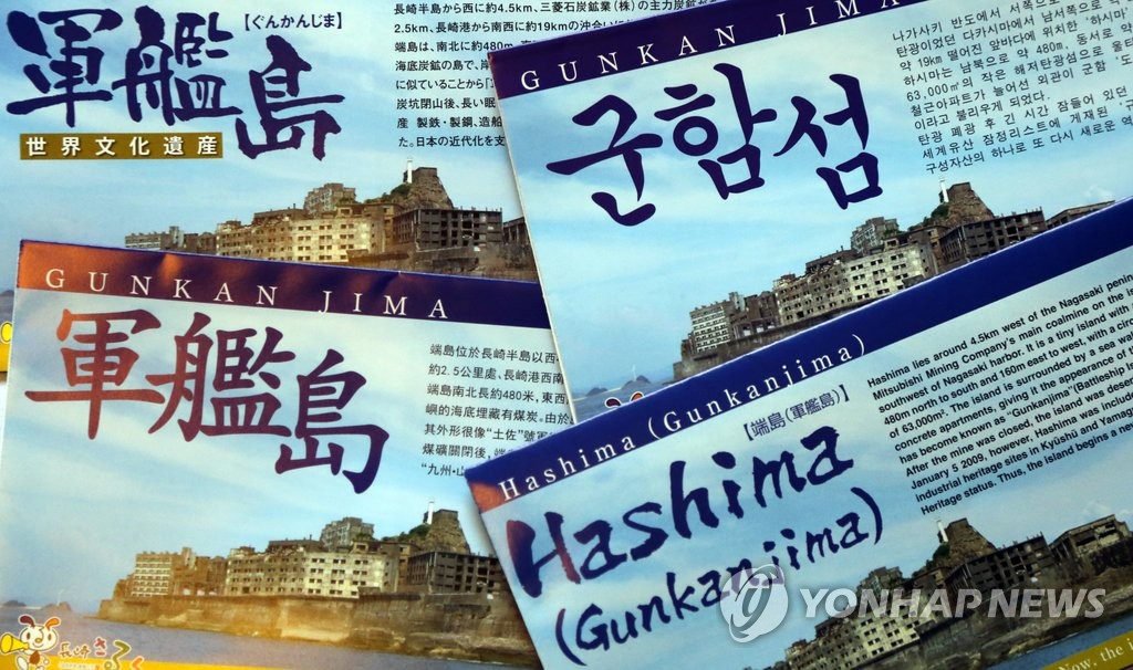 | ▲ 일본 군함도 홍보 자료 (나가사키=연합뉴스) 이세원 특파원 = 나가사키시가 각국 언어로 제작한 군함도 안내 자료. 조선인 강제 징용 문제는 다루지 않고 있다. |