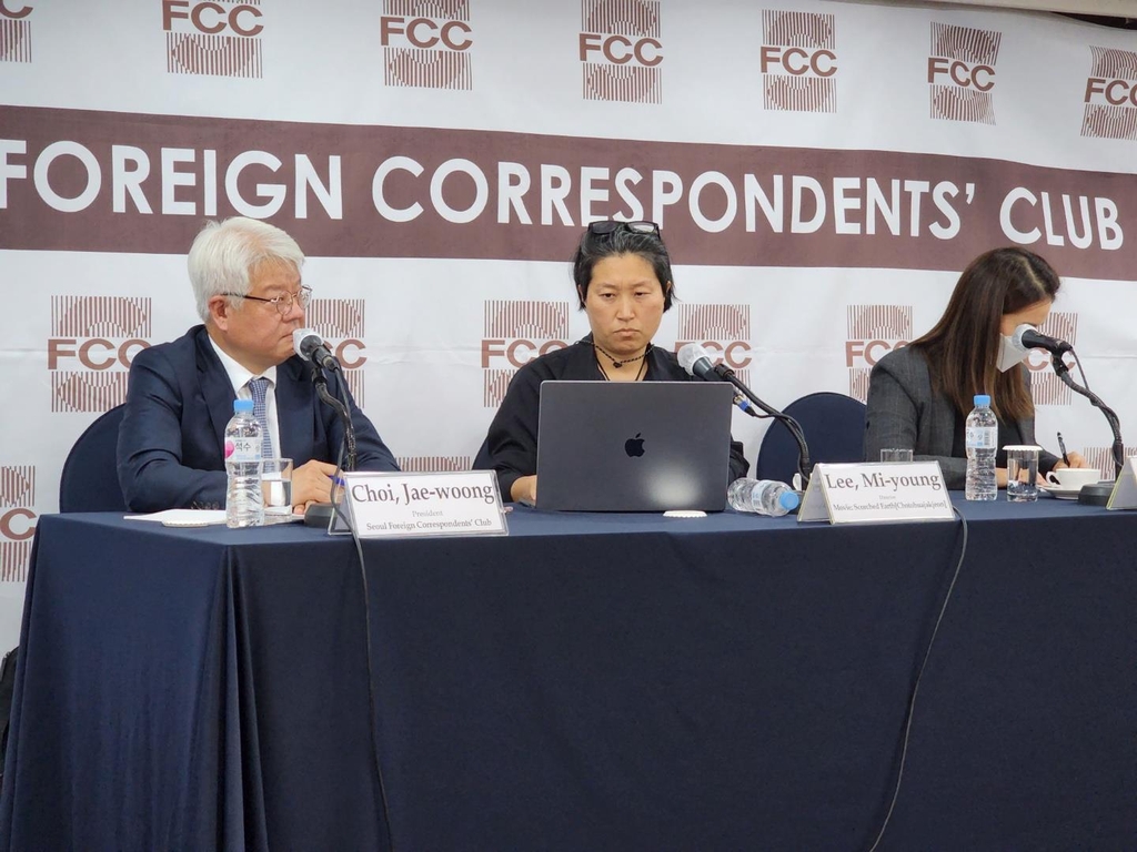 | ▲ 다큐 영화 '초토화작전' 상영 간담회 (서울=연합뉴스) 양정우 기자 = 한국전쟁 당시 미군이 민간인을 향해 대량의 공중폭격과 기총사격을 했다는 기록과 증언을 담은 다큐멘터리 영화가 공개됐다. 13일 서울 중구 프레스센터 외신기자클럽에서 상영된 이미영(47·가운데) 감독의 다큐 영화 '초토화 작전(Scorched Earth)'은 미국에서 기밀 해제된 미군 보고서와 시청각 자료 등을 토대로 한국전쟁 당시 미군의 민간인 폭격 실상을 담았다. 2022.10.13 eddie@yna.co.kr (끝) |