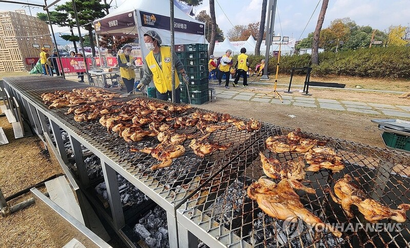 | ▲ 맛있게 익어가는 바비큐 (홍성=연합뉴스) 김소연 기자 = 지난 3일 충남 홍성군 홍주읍성 일원에서 개막한 '글로벌바베큐페스티벌 in 홍성' 행사장에서 닭고기가 익고 있다. 2023.11.3 soyun@yna.co.kr |