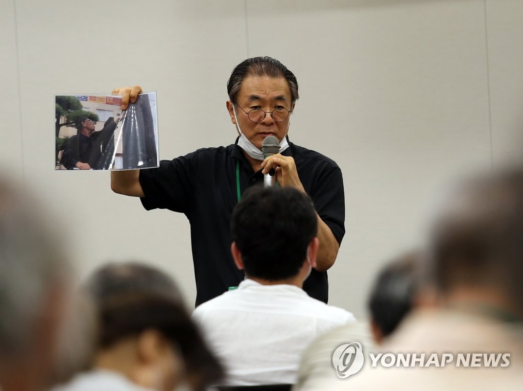 | ▲ 간토학살 문제 발언하는 오충공 감독 (도쿄=연합뉴스) 이세원 특파원 = 10일 오후 일본 도쿄도 지요다구 소재 중의원 제1의원 회관에서 간토 학살에 관한 다큐멘터리 영화를 만든 재일 교포 오충공 감독이 간토 학살에 관해 이야기하고 있다. |