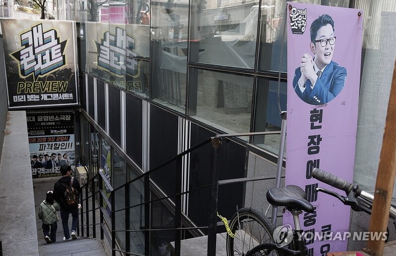 | ▲ 코미디 전용 극장 '윤형빈소극장', 30일 공연을 끝으로 폐관 (서울=연합뉴스) 황광모 기자 = 30일 서울 마포구 홍대 젊음의 거리 인근에서 코미디언 윤형빈이 15년간 운영한 코미디 전용 극장 '윤형빈소극장'에 운영 마지막날 공연을 보기 위한 관객이 입장하고 있다. 2010년 부산에서 출발한 윤형빈소극장은 2015년 현재 위치인 서울 마포구 홍익대학교 인근으로 확장 이전했다. '관객과의 전쟁', '로맨틱 크리스마스' 등 다수 공연을 선보이며 국내 코미디 공연의 중심지 역할을 했으나 관객 감소와 운영난 등을 이유로 이날 문을 닫게 됐다. 2025.3.30 hkmpooh@yna.co.kr |