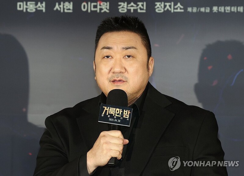 | ▲ 인사말하는 마동석 (서울=연합뉴스) 이재희 기자 = 배우 마동석이 2일 서울 광진구 롯데시네마 건대입구점에서 열린 영화 '거룩한 밤: 데몬 헌터스' 제작보고회에서 인사말을 하고 있다. 2025.4.2 scape@yna.co.kr |