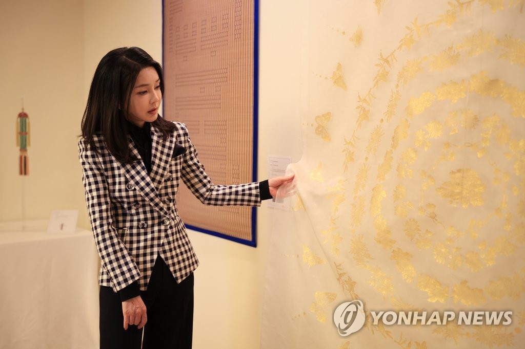 대통령실 이도운 대변인은 서면 브리핑에서 "김 여사가 오찬에서 우리 전통문화의 명맥을 이어가고 있는 무형문화재 보유자, 전승 교육사, 이수자들을 격려했다"고 전했다.