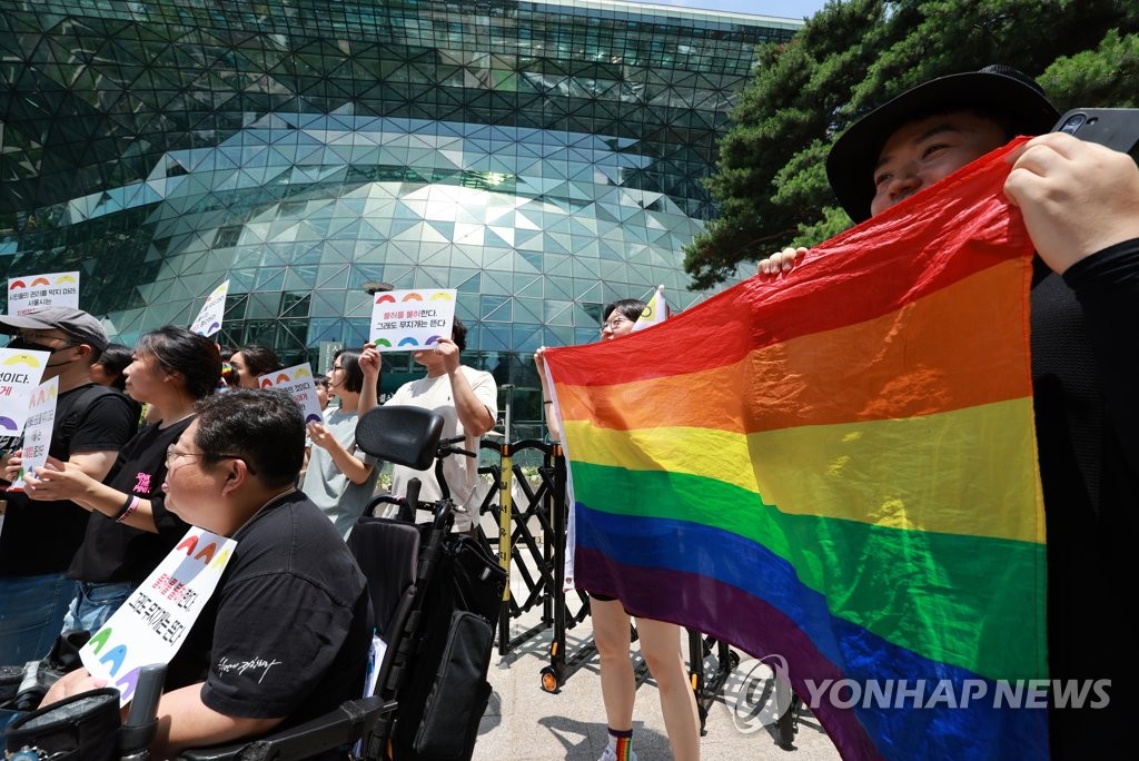성소수자차별반대 무지개행동 등은 서울시청 앞에서 광장 사용불허 결정을 규탄하는 기자회견도 열었다.