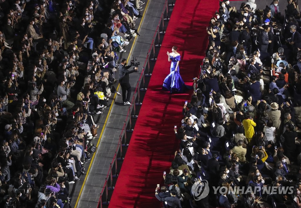 Celebrities in lavish dress posed for photos to claim the spotlight of the night and then walked the red carpet in front of shouting fans, who filled up about 5,000 open theater seats at the Busan Cinema Center in the southeastern port city of Busan.