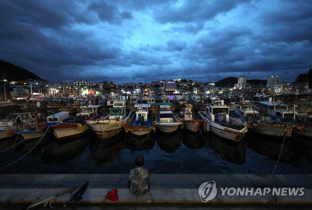| ▲ 태풍 전야 (통영=연합뉴스) 이지은 기자 = 제11호 태풍 '힌남노'가 북상 중인 5일 오후 경남 통영 강구안 일대에 먹구름이 깔려 있다. 2022.9.5 jieunlee@yna.co.kr |