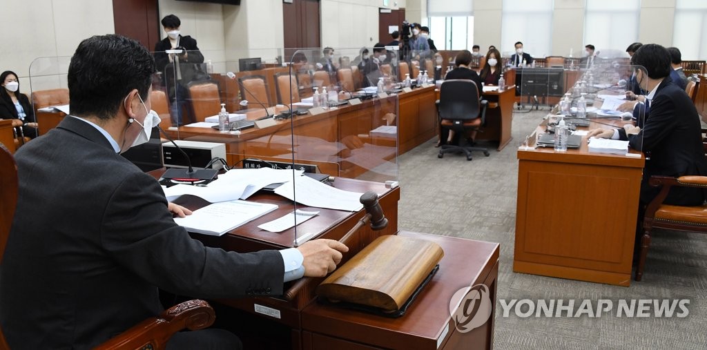 | ▲ 행안위 법안심사소위 (서울=연합뉴스) 진성철 기자 = 22일 서울 여의도 국회에서 열린 행정안전위원회 법안심사소위원회에서 박재호 소위원장이 의사봉을 두드리고 있다. 2021.4.22 zjin@yna.co.kr |