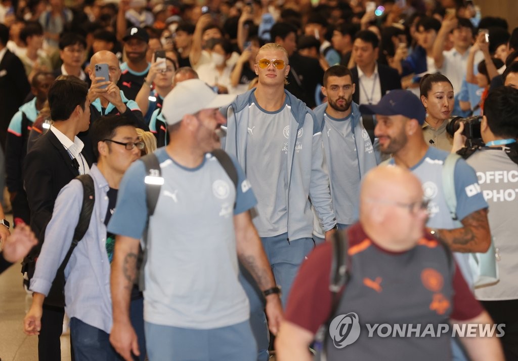 이날 오후 6시 30분께 인천국제공항 입국장에 페프 과르디올라 맨시티 감독을 비롯해 특급 스타 엘링 홀란, 케빈 더브라위너 등 선수단이 모습을 드러냈다.