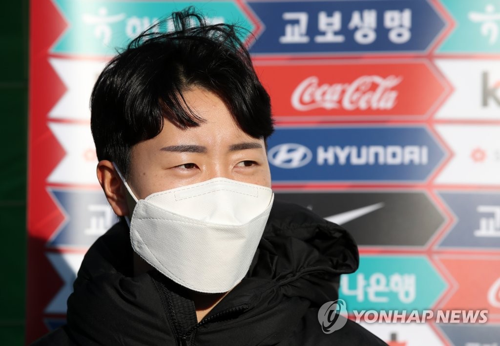 | ▲ Son Hwa-yeon, forward for the South Korean women's national football team, speaks to reporters before practice at Gangjin Sports Complex in Gangjin, 410 kilometers south of Seoul, on Jan. 19, 2021. (Yonhap) |