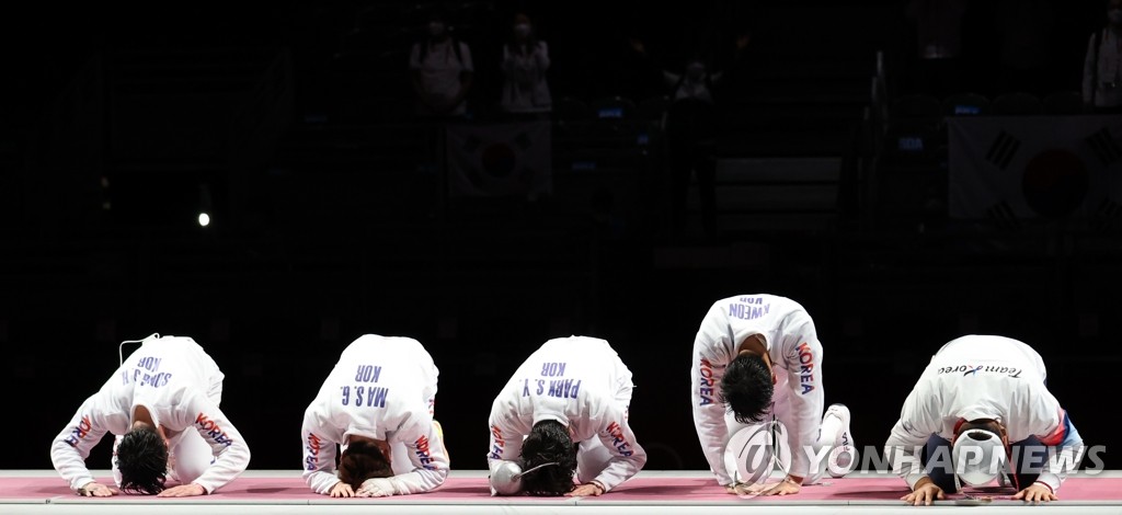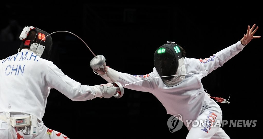 CHIBA, Japan, July 30 (Yonhap) -- South Korea overcame an early deficit to beat China for the bronze medal in the men's epee fencing team event of the Tokyo Olympics on Friday.