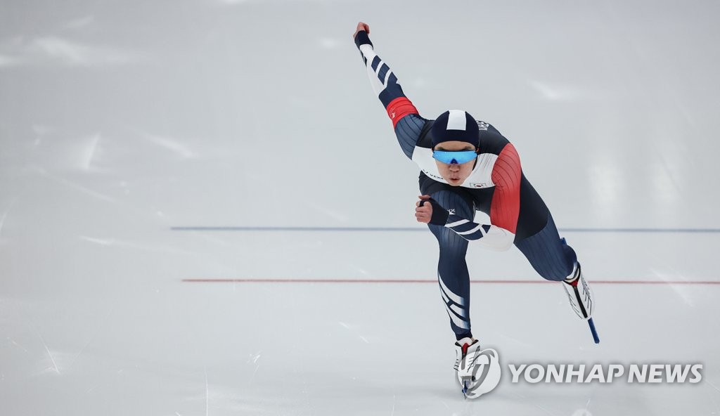 | ▲ Cha Min-kyu of South Korea competes in the men's 500m speed skating race at the Beijing Winter Olympics at the National Speed Skating Oval in Beijing on Feb. 12, 2022. (Yonhap) |