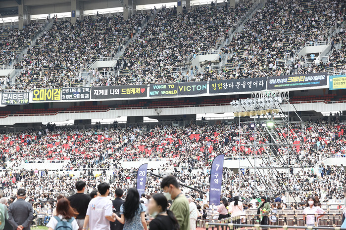 People pack Jamsil Olympic Main Stadium in Seoul to see the 28th Dream Concert, which was held in-person for the first time in three years, on June 18, 2022. (Yonhap)