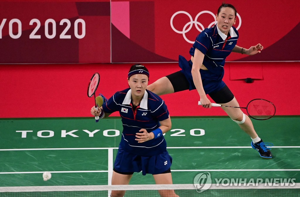 TOKYO, July 29 (Yonhap) -- South Korea has secured at least a bronze medal in the women's doubles badminton event at the Tokyo Olympics, after two pairs advanced to the semifinals on the opposite sides of the bracket on Thursday.