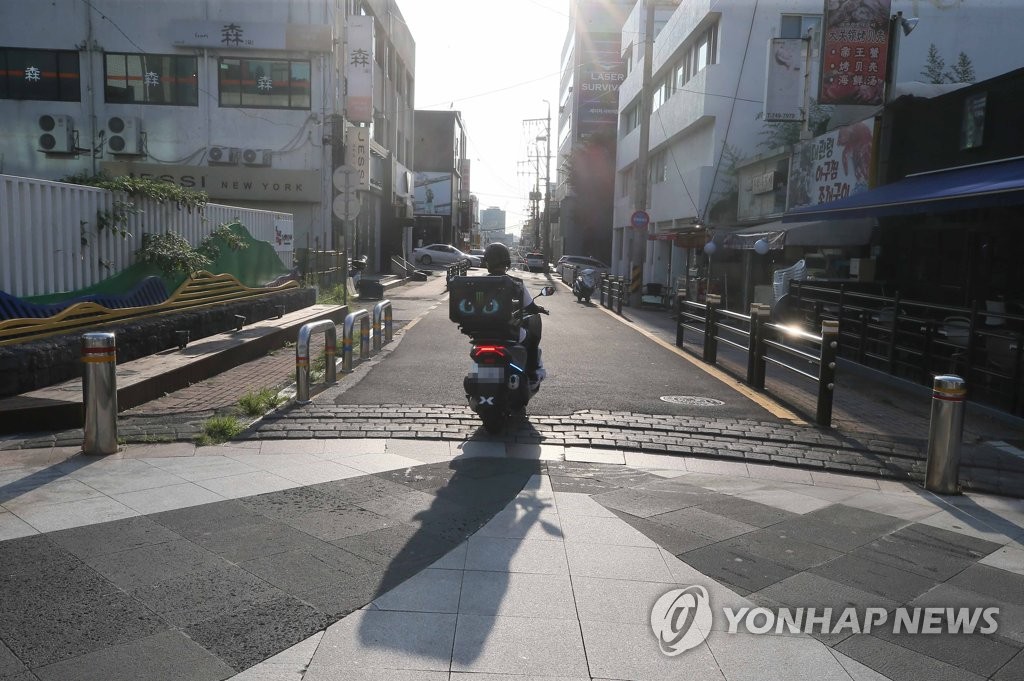 | ▲ "4단계 첫날 바쁘다 바빠!" (제주=연합뉴스) 변지철 기자 = 사회적 거리두기 4단계 조치가 시행된 첫날인 18일 오후 제주시 연동 누웨모루 거리에서 배달 오토바이가 바쁘게 음식을 배달하고 있다. 2021.8.18 bjc@yna.co.kr |