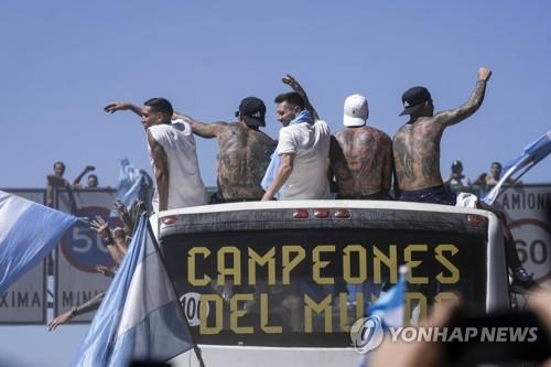 카타르에서 전용기 편으로 수도 부에노스아이레스에 이날 새벽(현지시간) 도착한 아르헨티나 대표팀은 오전 11시 45분께 도심 한복판에서 우승 기념 축하 카퍼레이드를 벌였다.