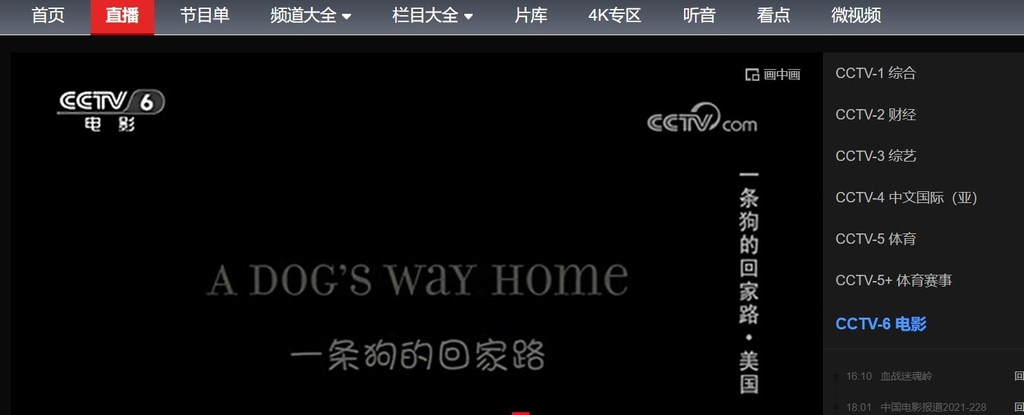 중국 미디어 규제 당국인 국가신문출판광전총국 직속 기구인 CCTV 채널 6는 이날 오후 2019년 작 미국 영화 '더 웨이 홈'(원제: A Dog's Way Home)을 편성·방영했다.