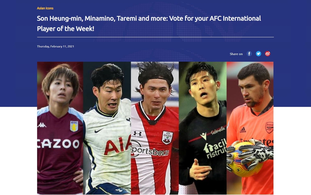 AFC는 11일(한국시간) 홈페이지를 통해 'AFC 이주의 선수' 후보 12명을 발표했다.