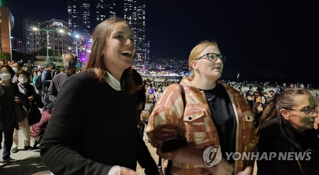 | ▲ BTS 공연에 해운대도 '들썩' (부산=연합뉴스) 박성제 기자 = 15일 오후 부산 해운대 해수욕장에서 방탄소년단의 2030 부산세계박람회 유치 기원 단독콘서트 라이브플레이(LIVE PLAY)가 열리는 가운데 백사장이 공연을 관람하는 시민들로 인산인해를 이루고 있다. 2022.10.15 psj19@yna.co.kr |
