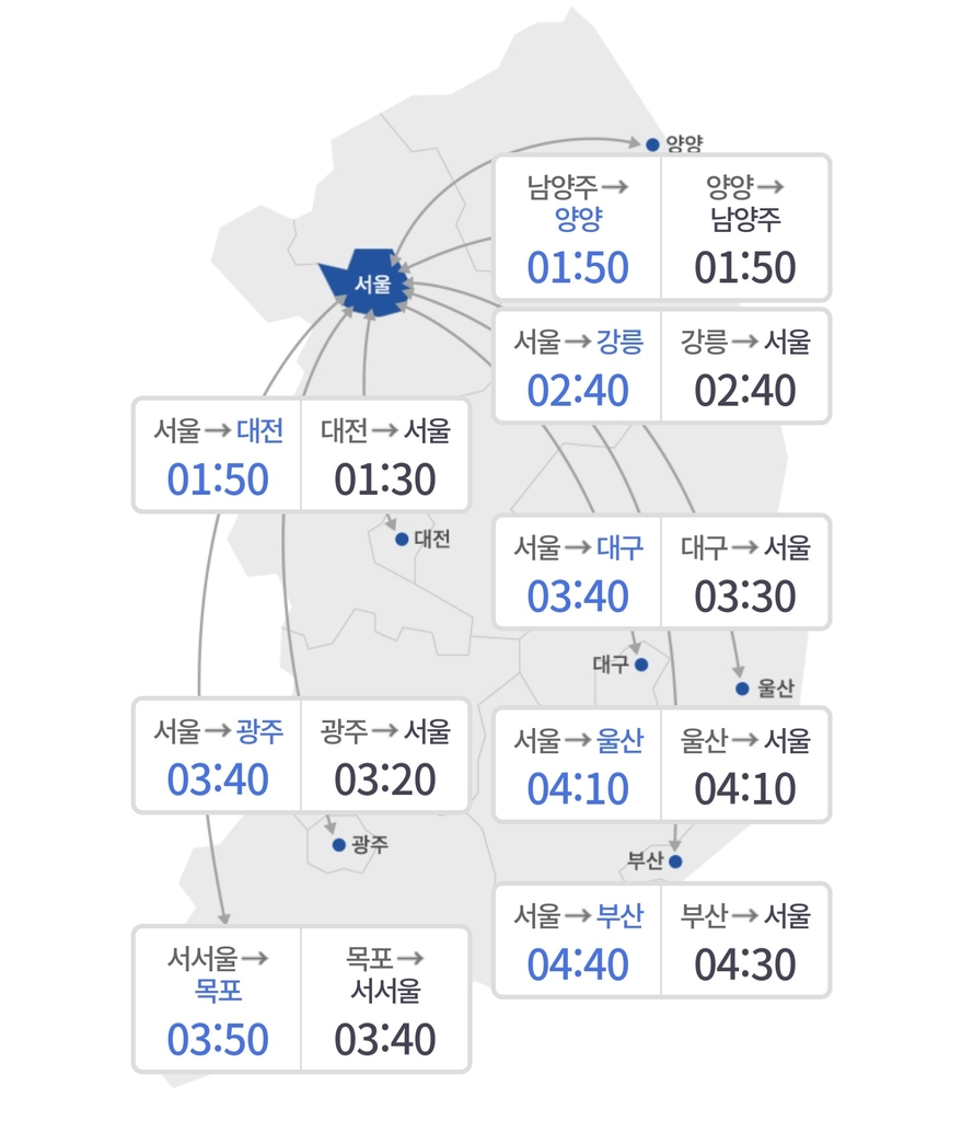 | ▲ 오후 8시 기준 서울∼주요도시 예상 소요시간 [한국도로공사 홈페이지 캡처. 재판매 및 DB 금지] |