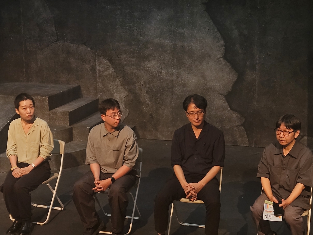 | ▲ '2023 산울림 고전극장' 기자간담회 (서울=연합뉴스) 12일 서울 마포구 산울림 소극장에서 열린 '2023 산울림 고전극장 기자간담회'에서 이슬기(왼쪽부터), 안제홍, 한민규 연출과 임수현 예술감독이 기자의 질문을 듣고 있다. 2023.7.12. cjs@yna.co.kr |