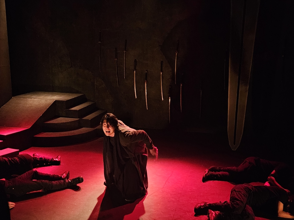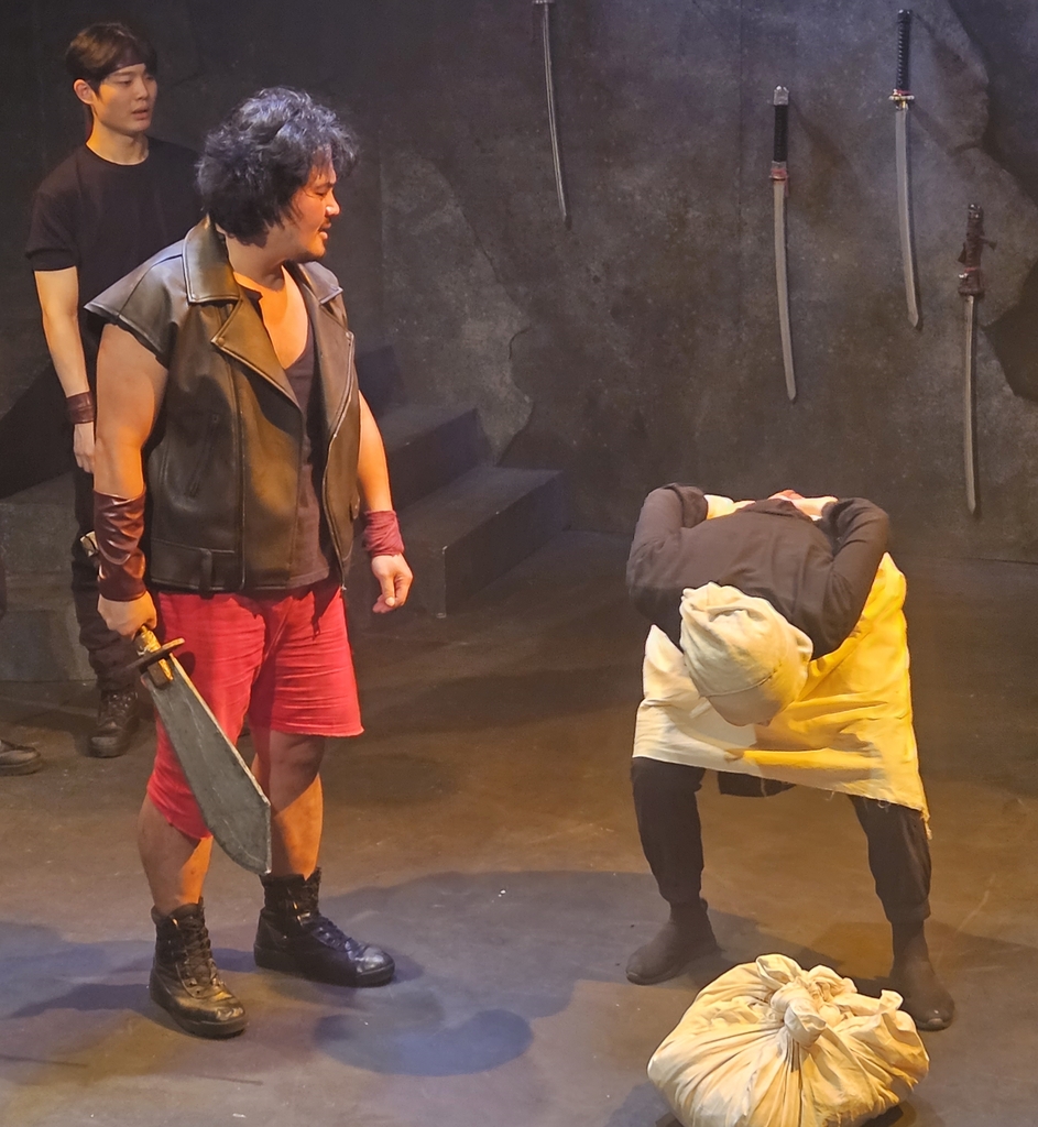 | ▲ 연극 '용의 아이' (서울=연합뉴스) 12일 서울 마포구 산울림 소극장에서 열린 '2023 산울림 고전극장 기자간담회'에서 극단 혈우가 연극 '용의 아이'를 시연하고 있다. 2023.7.12. cjs@yna.co.kr |