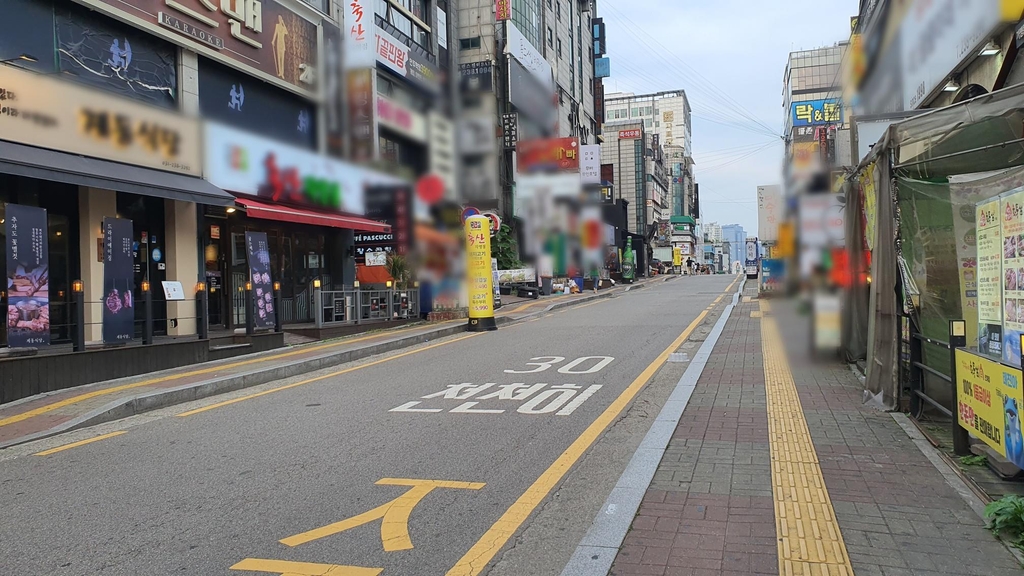 | ▲ 퇴근시간 한산한 식당가 (수원=연합뉴스) 김솔 기자 = 사회적 거리두기 4단계 시행 첫날인 12일 저녁 경기 수원시의 식당가가 한산한 모습을 보이고 있다. |