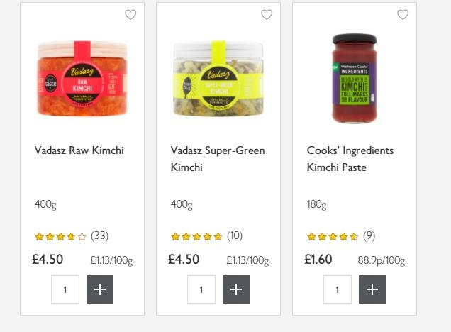 | ▲ 영국 슈퍼 웨이트로즈 김치 판매 (런던=연합뉴스) 영국 슈퍼마켓 웨이트로즈 온라인몰에서 김치를 판매하고 있다.[웨이트로즈 온라인몰 캡처. 재판매 및 DB 금지] |
