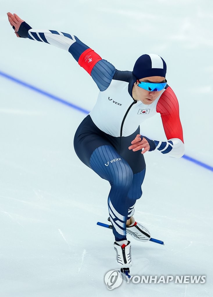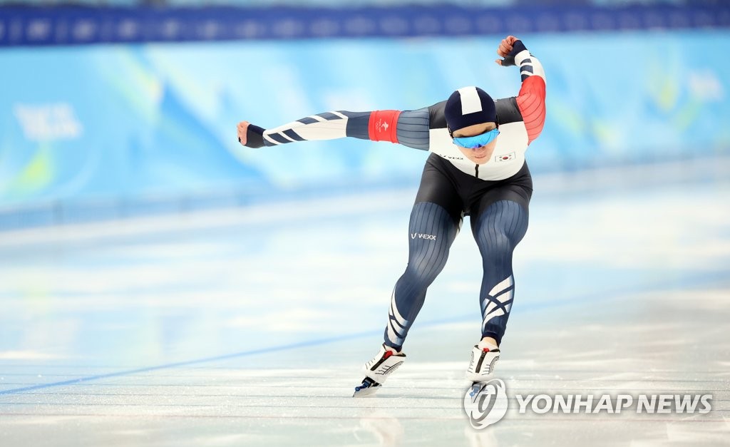 | ▲ Cha Min-kyu of South Korea competes in the men's 500m speed skating race at the Beijing Winter Olympics at the National Speed Skating Oval in Beijing on Feb. 12, 2022. (Yonhap) |