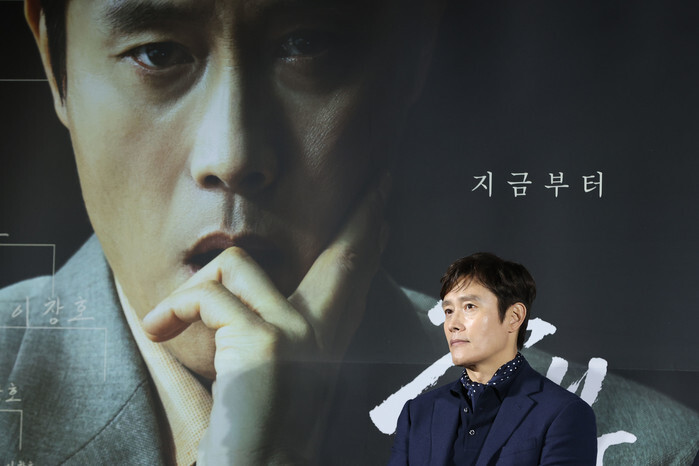 South Korean actor Lee Byung-hun, who stars in the new movie "The Match," listens to reporters' questions during a publicity event in Seoul on March 7, 2025, to promote the movie, set to hit local screens in South Korea on March 26. (Yonhap)