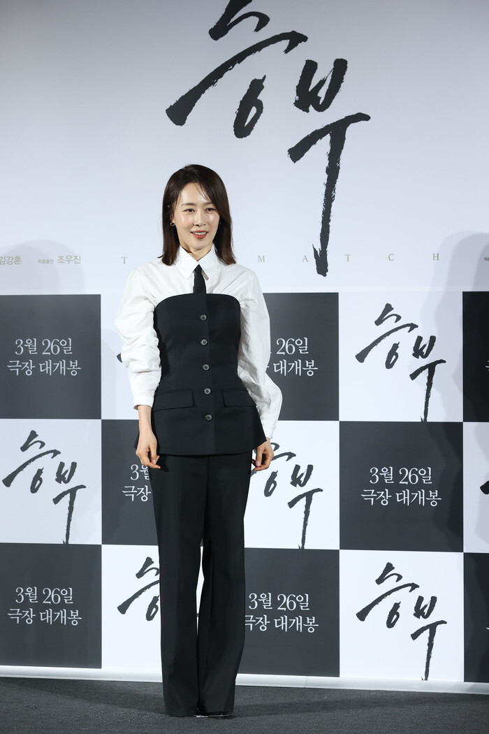 South Korean actress Moon Jung-hee, who stars in the new movie "The Match," poses for a photo during a publicity event in Seoul on March 7, 2025, to promote the movie, set to hit local screens in South Korea on March 26. (Yonhap)