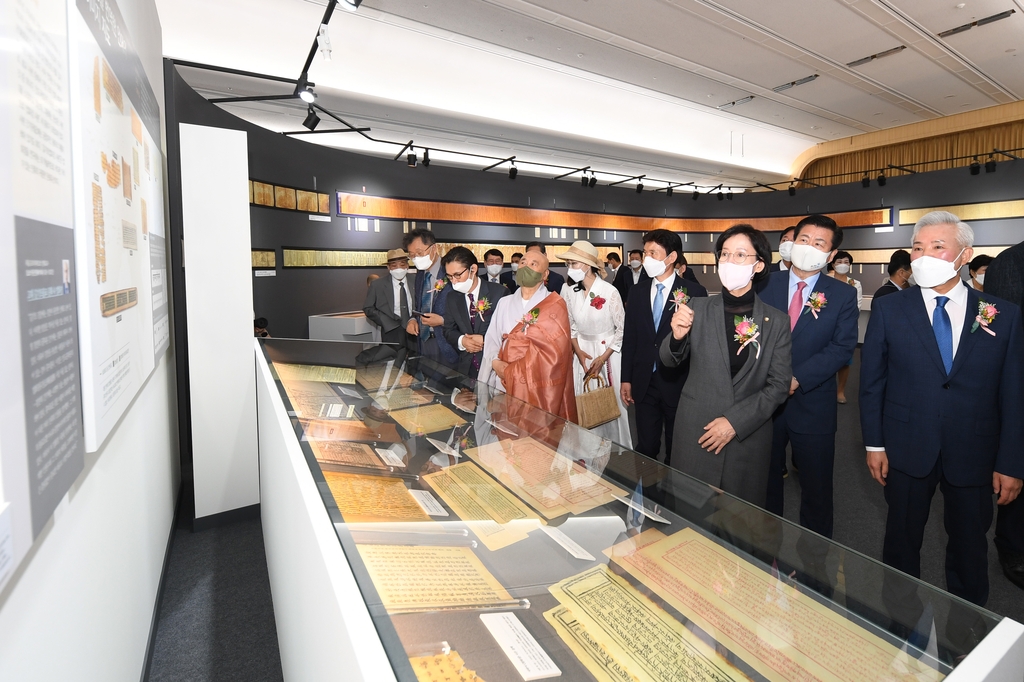 | ▲ 법화경전 개막식 참석 인사 전시회 관람 [한국SGI 제공. 재판매 및 DB 금지] |