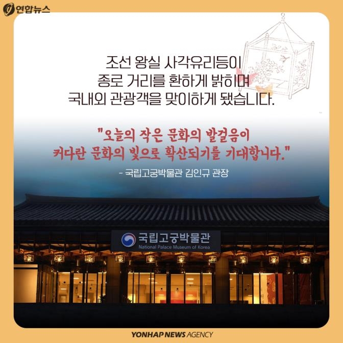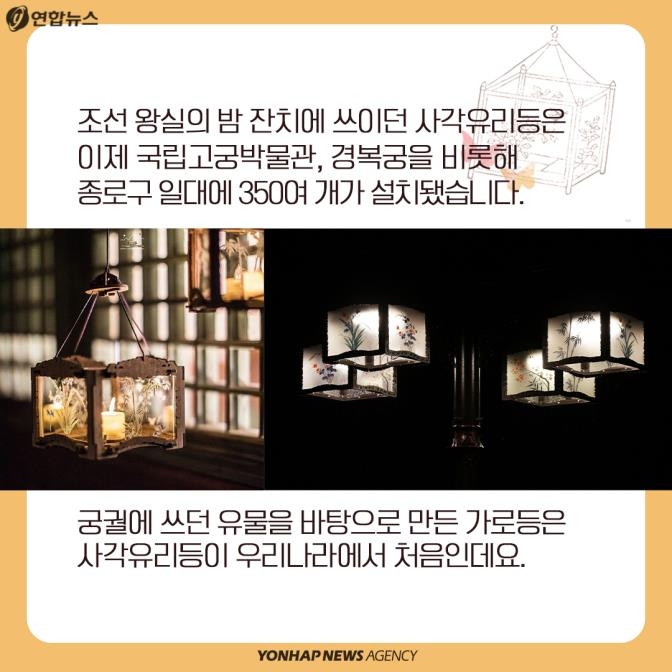 조선 왕실의 밤잔치에 쓰이던 사각유리등은 이제 국립고궁박물관, 경복궁을 비롯해 종로구 일대에 350여 개가 설치됐습니다.
