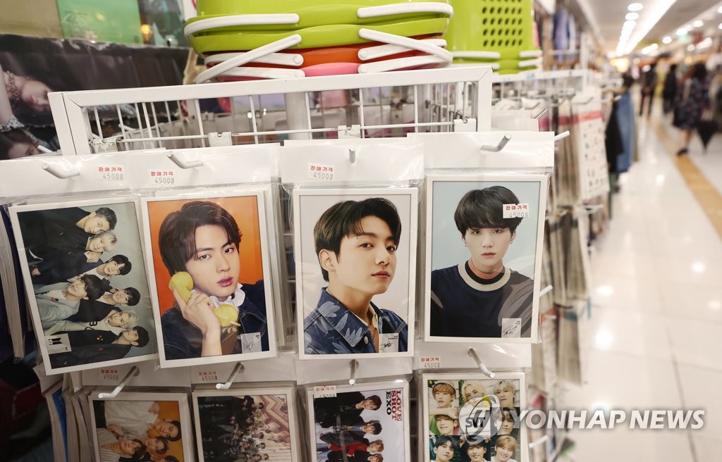 | ▲ BTS, 팀 아닌 솔로로 (서울=연합뉴스) 진연수 기자 = 그룹 방탄소년단(BTS)이 데뷔 9년 만에 단체 활동 잠정 중단하고 개별 활동에 나선다. 방탄소년단(BTS)은 자체 유튜브 채널 '방탄TV(BANGTANTV)'를 통해 팀 활동을 잠정 중단으로 'BTS의 1막'을 마무리하고 멤버별 솔로 활동을 통한 'BTS 2막'을 열어가겠다고 언급하며 팀 활동과 개별 활동을 병행하는 계획을 밝혔다. 사진은 15일 서울 명동의 한 굿즈 매장에 진열된 방탄소년단 사진. 2022.6.15 jin90@yna.co.kr |