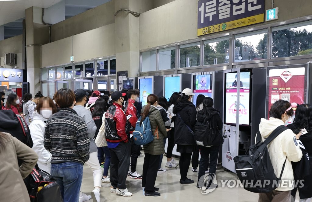 | ▲  Fans prepare to enter Jamsil Baseball Stadium in Seoul on Oct. 19, 2021, before a Korea Baseball Organization regular season game between the LG Twins and the Kiwoom Heroes. (Yonhap) |