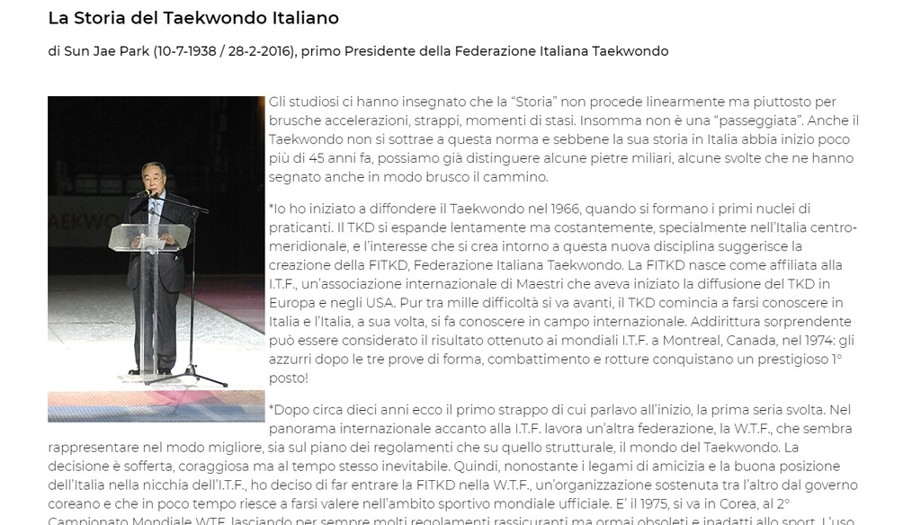 | ▲ 이탈리아태권도협회(FITA) 웹사이트에 소개된 협회 창설자 고 박재선씨. [FITA 웹사이트 갈무리. 재판매 및 DB 금지] |