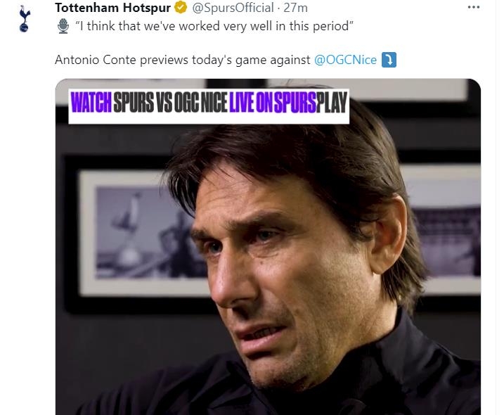 | ▲ 인터뷰하는 콘테 감독 [토트넘 구단 트위터 캡처. 재판매 및 DB금지] |