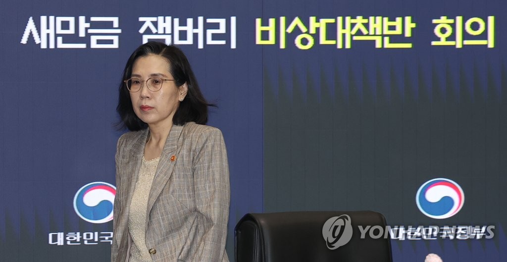 | ▲ 잼버리 마무리 회의 참석하는 김현숙 장관 (서울=연합뉴스) 류영석 기자 = 김현숙 여성가족부 장관이 12일 오전 정부서울청사에서 열린 새만금 잼버리 비상대책반 회의에 참석하고 있다. 2023.8.12 ondol@yna.co.kr |