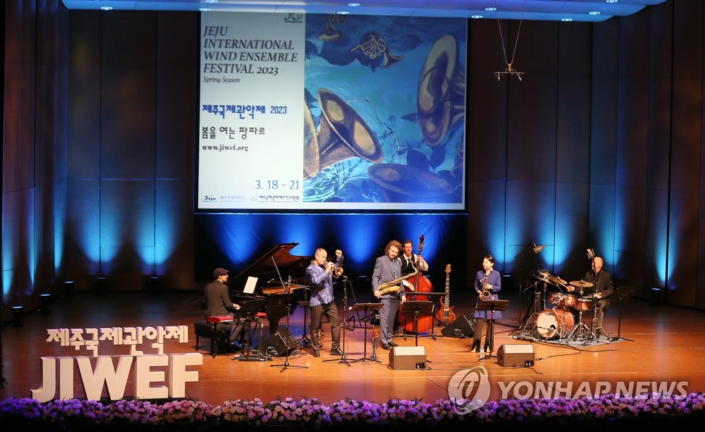 | ▲ 제28회 제주국제관악제 개막 (제주=연합뉴스) 변지철 기자 = 18일 오후 제주아트센터에서 제28회 제주국제관악제 개막 공연이 펼쳐지고 있다. 2023.3.18 bjc@yna.co.kr |