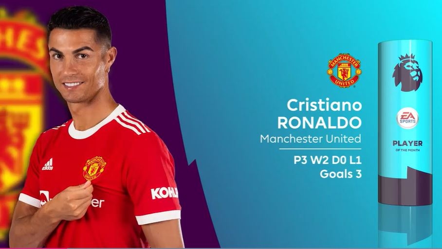 프리미어리그 사무국은 8일(한국시간) 홈페이지를 통해 "맨유 복귀 직후 인상적인 활약을 펼친 호날두가 EPL 9월의 선수로 선정됐다"고 밝혔다.