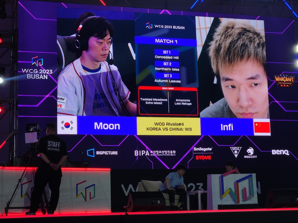 (부산=연합뉴스) 김주환 기자 = 워크래프트3·스타크래프트2 e스포츠를 상징하는 국내 프로게이머들이 부산에서 개막한 WCG(월드사이버게임즈) 현장을 찾아 '라이벌' 중국과의 이벤트 경기에서 값진 승리를 따냈다.