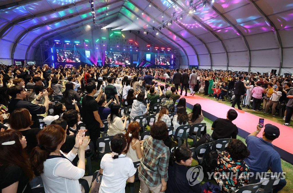 | ▲ 부천국제판타스틱영화제 환호하는 관람객들 (부천=연합뉴스) 임순석 기자 = 29일 오후 경기도 부천시 부천시청 야외무대에서 열린 제27회 부천국제판타스틱영화제 개막식에서 배우들의 입장에 관람객들이 환호하고 있다. 2023.6.29 soonseok02@yna.co.kr |