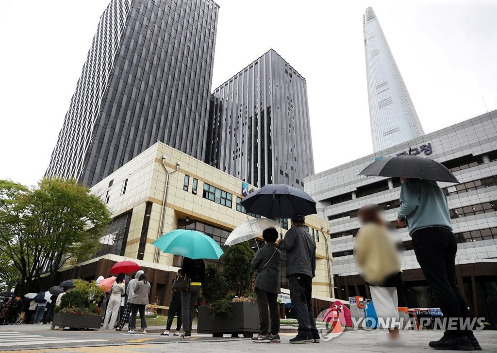 | ▲ Citizens stand in line to get COVID-19 tests at a makeshift screening station in Seoul on April 12, 2021. (Yonhap) |