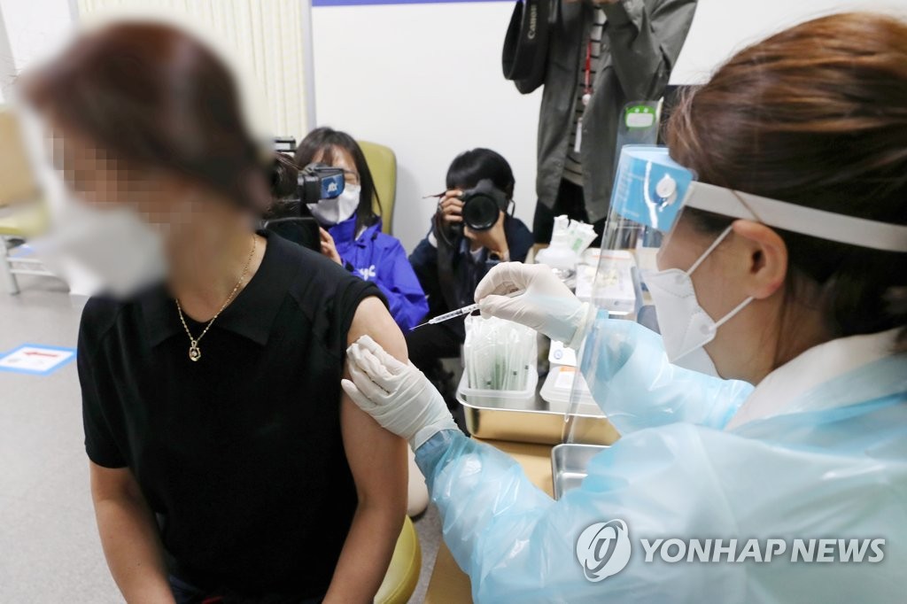 | ▲ A medical worker gives an AstraZeneca vaccine shot to a person in Seoul on April 12, 2021. (Yonhap) |