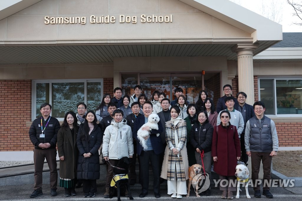 | ▲ 안내견센터 관계자들과 기념촬영하는 윤석열 대통령 부부 (서울=연합뉴스) 임헌정 기자 = 윤석열 대통령과 김건희 여사가 24일 경기도 용인 삼성화재 안내견 학교에서 은퇴 안내견 '새롬이'를 분양받은 뒤 안내견센터 관계자들과 기념촬영을 하고 있다. 2022.12.24 [대통령실 제공. 재판매 및 DB 금지] kane@yna.co.kr |